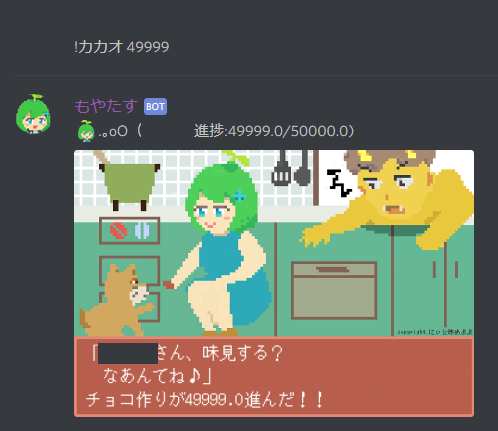 でチョコレートの作成が進捗します。 進捗が0になれば完成でRainです。