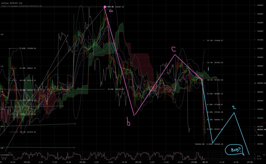 ビットフライヤーのチャートを利用してのFXです。