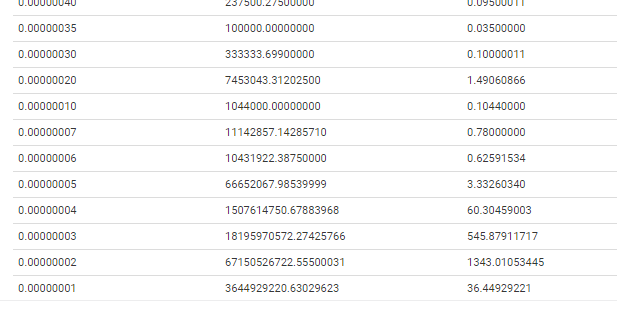 買い板の状況は2satoshiは600億枚の買いが入っています。3でも200億枚。