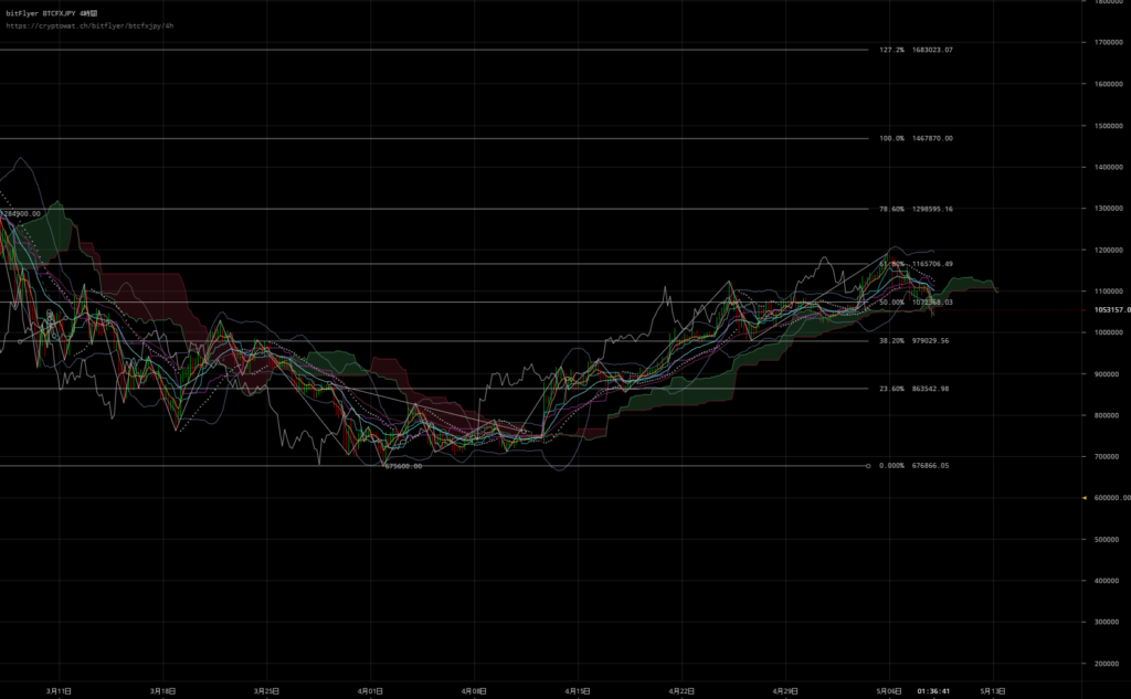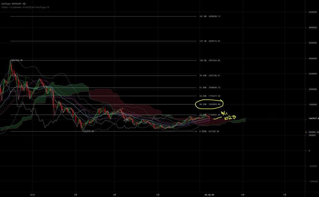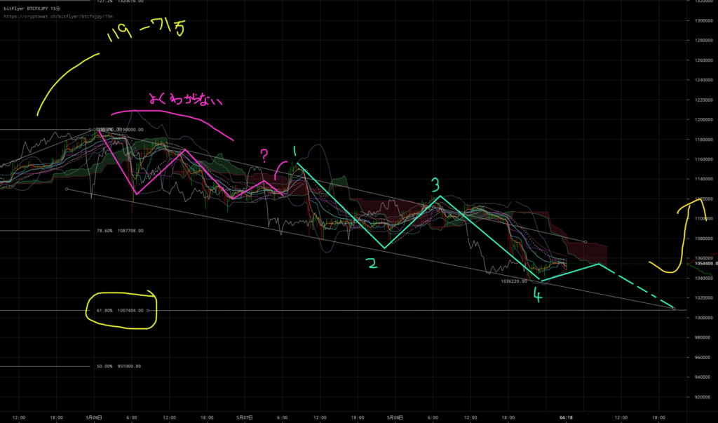 明日ぐらいまで下落して102万で反転しないかな・・・。という風に思っています。