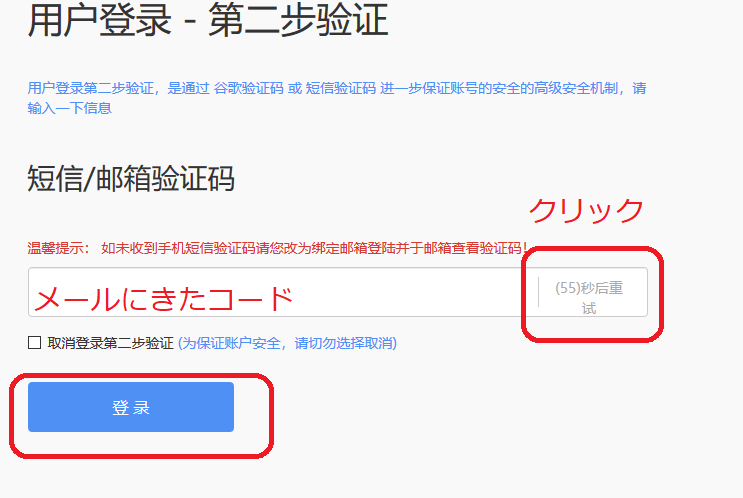 ②コードは右側の再送付の所をクリックするとメールアドレスに送られてきます。数字です。