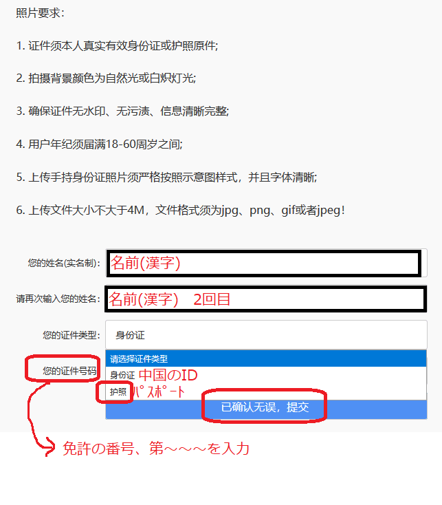 免許証ですがパスポートを選択しました!(2文字の方を選んで下さい)。